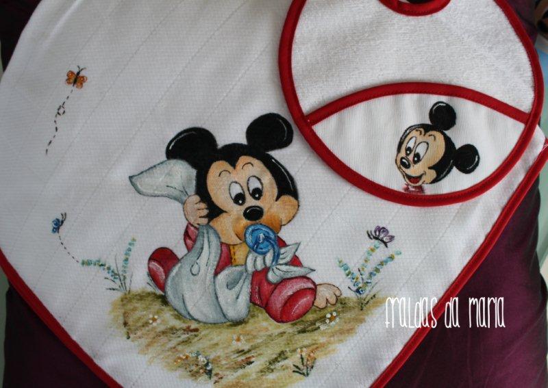 Mais dois babetes com o Mickey em pose divertida pintado à mão!