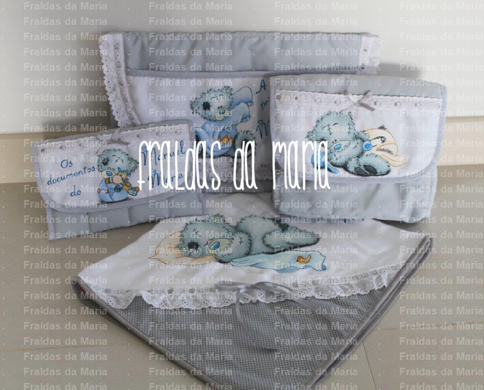 Conjunto com o Ursinho Forever Friends (Me to You)! Composto por: Porta-Documentos; Porta-Fralda+Toalhitas, Fralda e Bolsa 1ª Roupinha.
